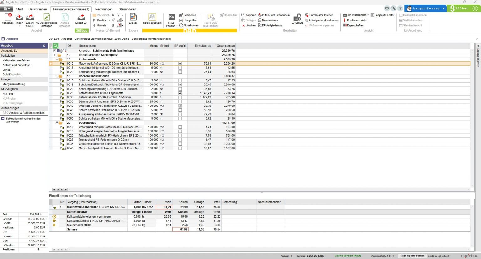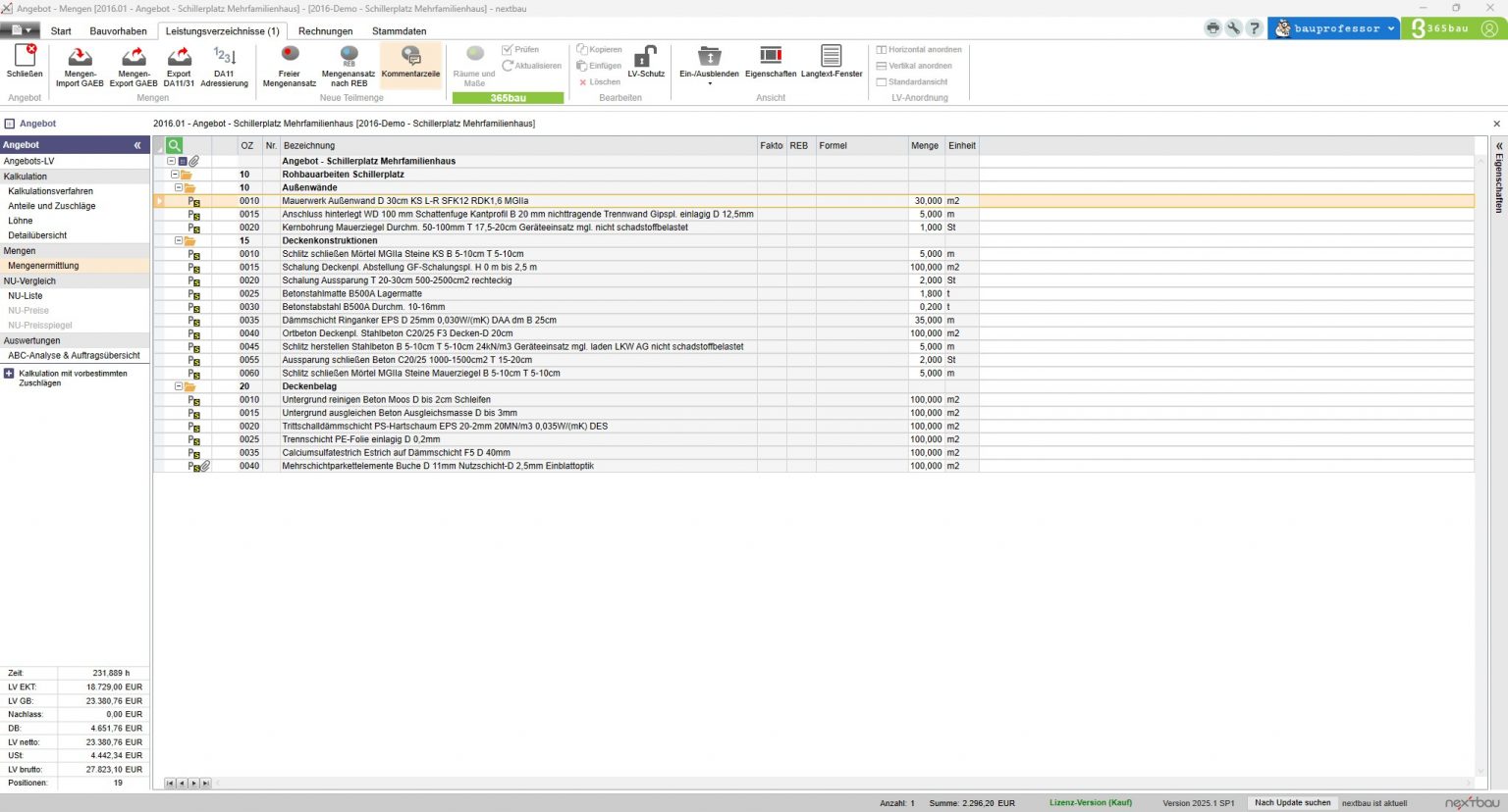 egal ob cleveres Ausschreiben, Kostenplanung nach DIN 276, Bieter-Preisspiegel, Übersicht bei Aufmaß-Mengen, Prüfen von Nachtragspreisen, clevere Angebotskalkulation, automatisches Ausfüllen der EFB-Formblätter, kumulierte Abrechnung oder VOB-sichere Nachträge: nextbau macht die Arbeit leichter.